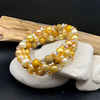 •• SÅLD •• 3-radigt armband GYLLENE SAND beige