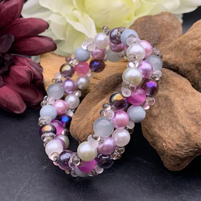 •• SÅLD •• 3-radigt armband SYREN lila/rosa/grå