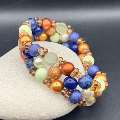 3-radigt armband PÄRLEMO offwhite/blå/grön
